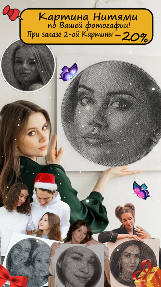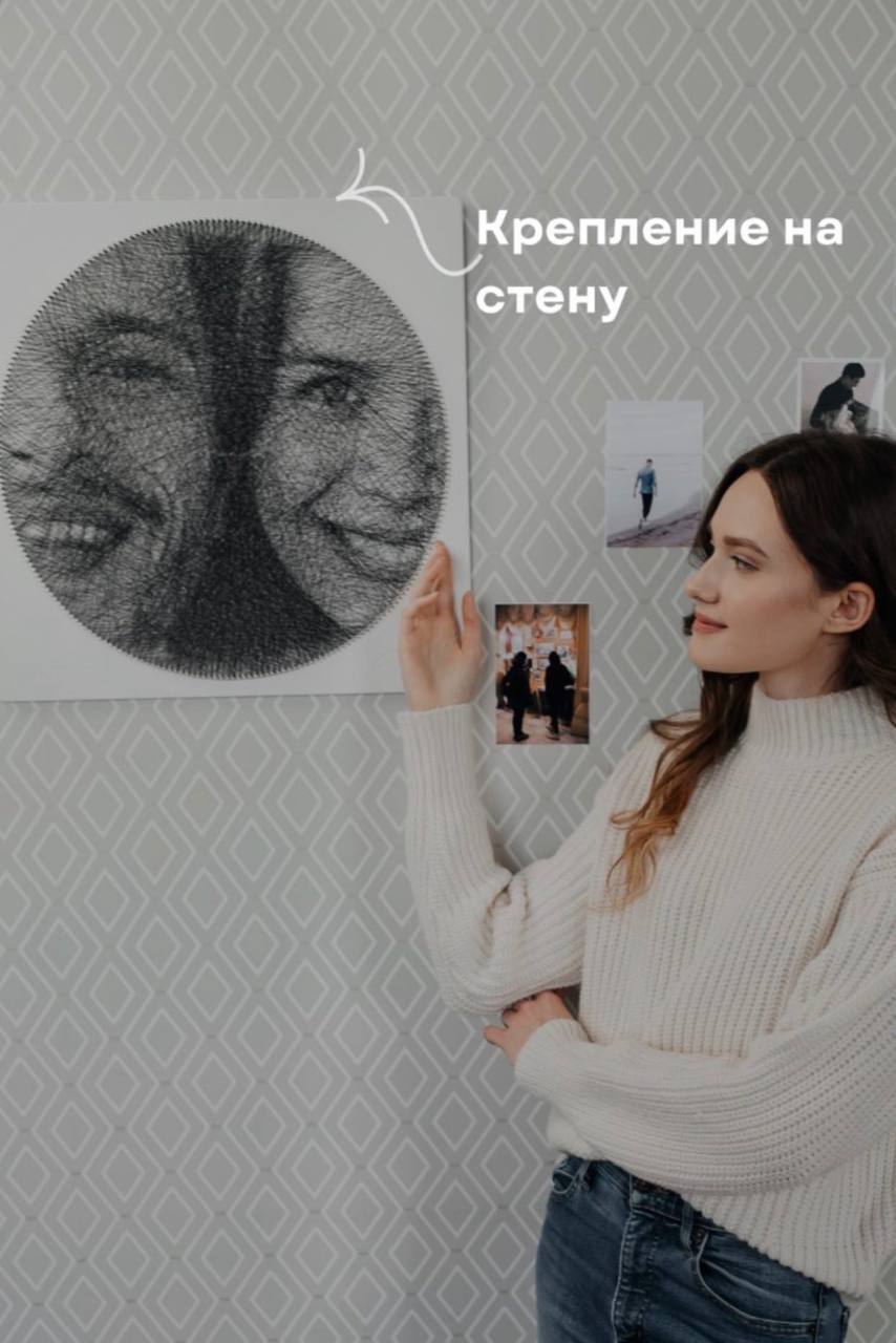 Картина выполнена полностью из ниток по Вашей фотографии. Ручная работа, на сборку одной картины уходит 20-60+ часов.