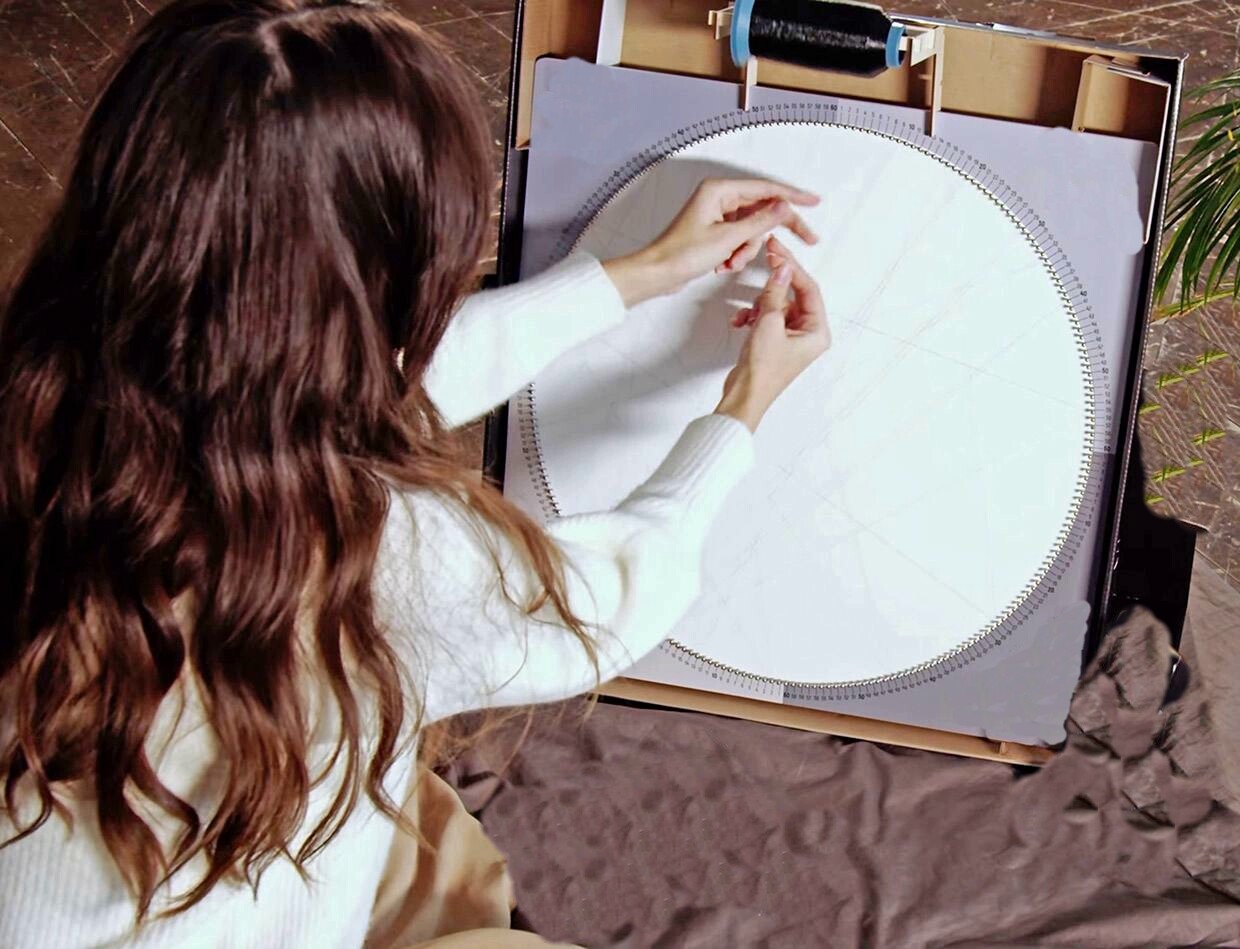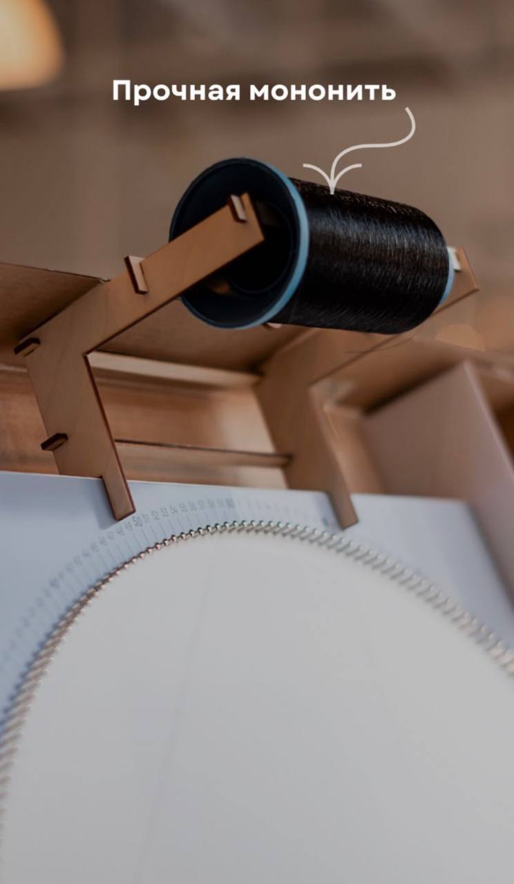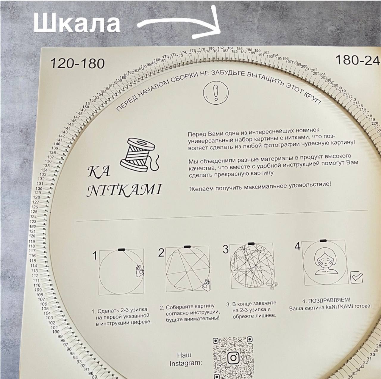 В наборе будут идти: Заготовка с набитыми уже гвоздиками, инструкция по сборке картины, нитки.